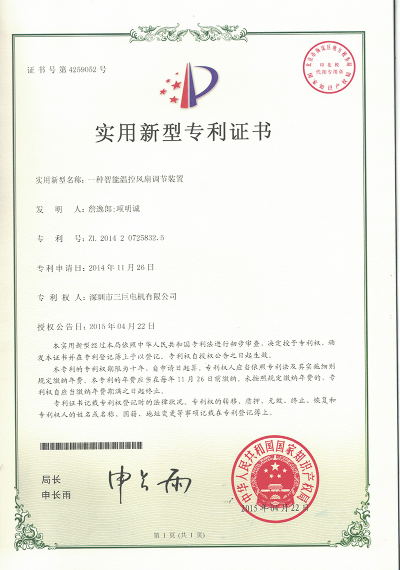 ——Feb 26, 2020新型專利-一種智能溫控風扇調節裝置